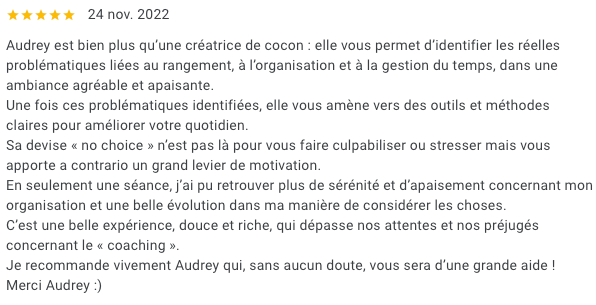 Ce n’est pas juste du rangement. C’est une méthode de transformation intérieure à travers ton espace. Tu investis dans ta sérénité, ton énergie et ton mieux-être durable. Il te permet d’économiser du temps, de l’énergie et du stress au quotidien en créant un espace qui te soutient.